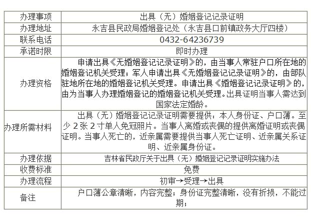 出具(无)婚姻登记记录证明办事指南